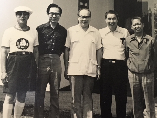 林英豪校長訪問波士頓。左起: 梅競雄、趙羡藻 (52 偉社)、黃偉炎 (44 昭社)、余躍雲 (35 覺社)、林英豪校長。